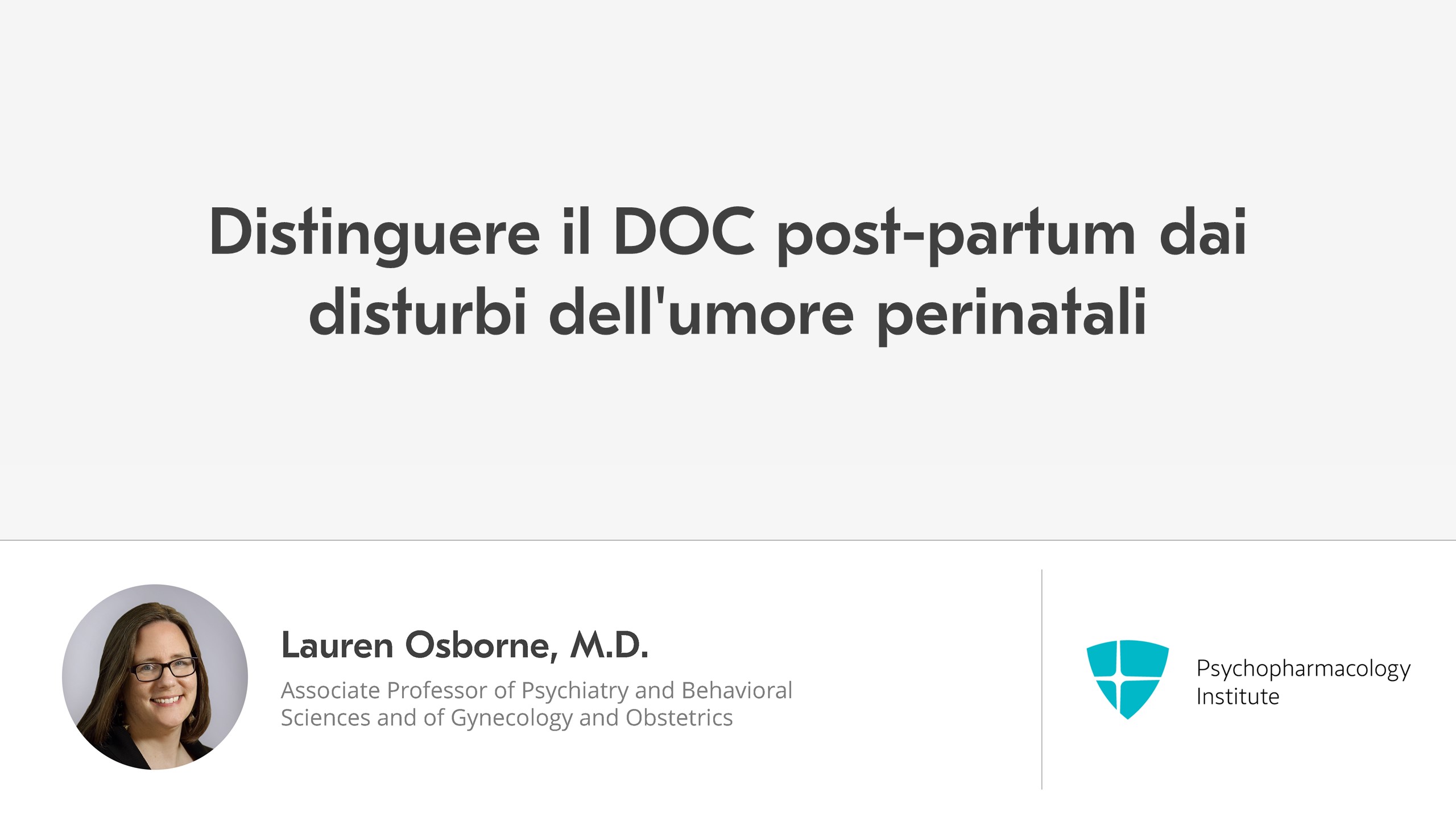 Come si fa a distinguere tra tutte queste sindromi? Una cosa da ricordare è che esiste un'elevata comorbilità tra depressione e disturbo ossessivo-compulsivo e un'alta prevalenza di ossessioni nella depressione post-partum. Quindi spesso si mescolano e si sovrappongono. Ma una cosa davvero importante è assicurarsi di distinguere il disturbo ossessivo-compulsivo post-partum dalla psicosi post-partum. Le due cose possono spesso presentarsi in modi molto simili, ma è fondamentale fare questa distinzione.