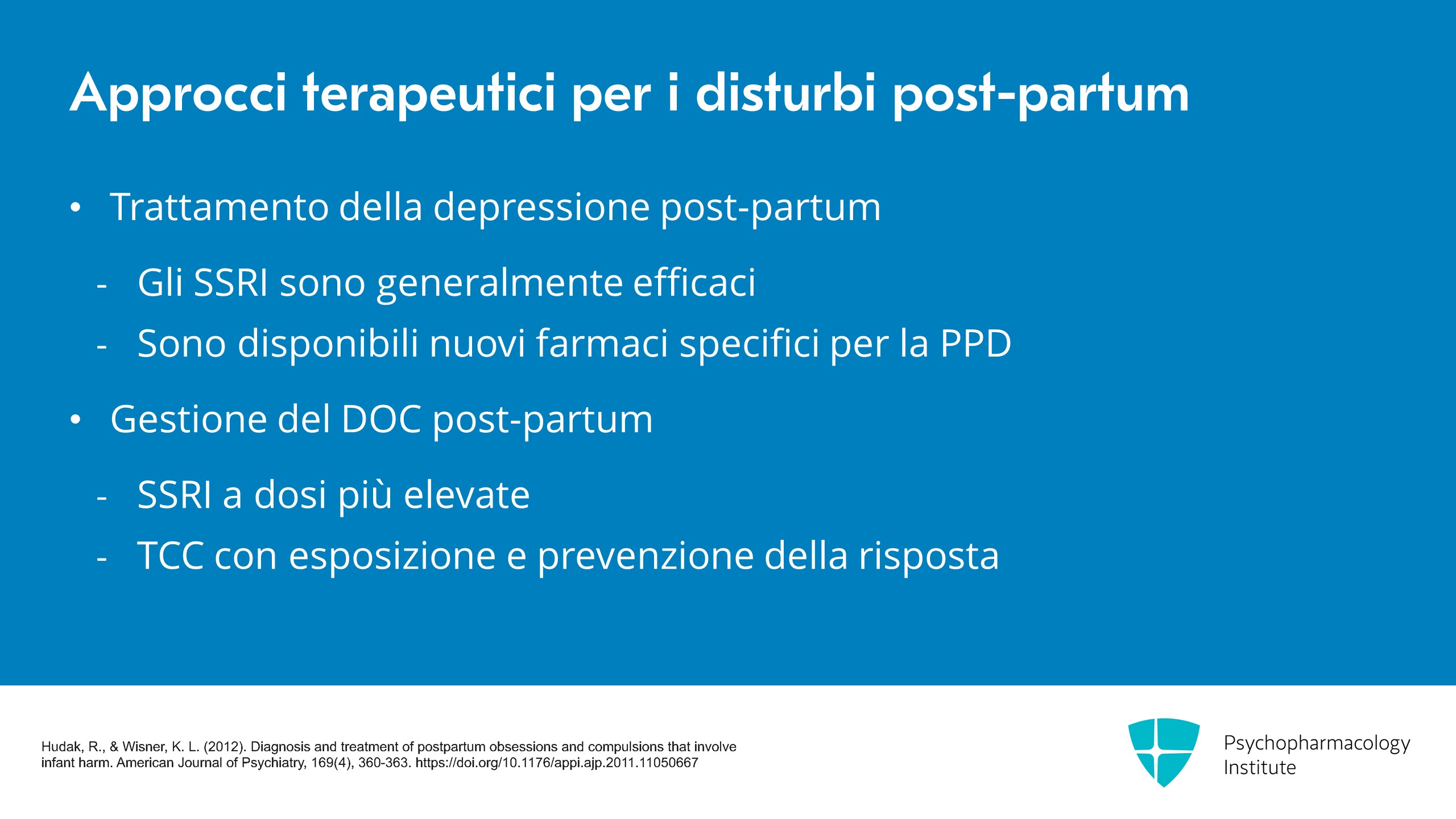 Hudak, R., & Wisner, K. L. (2012). Diagnosis and treatment of postpartum obsessions and compulsions that involve infant harm. American Journal of Psychiatry, 169(4), 360-363. https://doi.org/10.1176/appi.ajp.2011.11050667